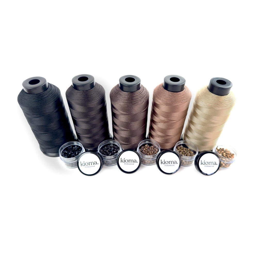 Our New & Improved KIOMA Weft Beads are expertly crafted for flawless Genius Weft, Hand-Tied, and Double Weft sew-in installations. Made with thicker, more malleable aluminum, these beads are built to withstand multiple move-up services while providing a strong yet flexible hold.