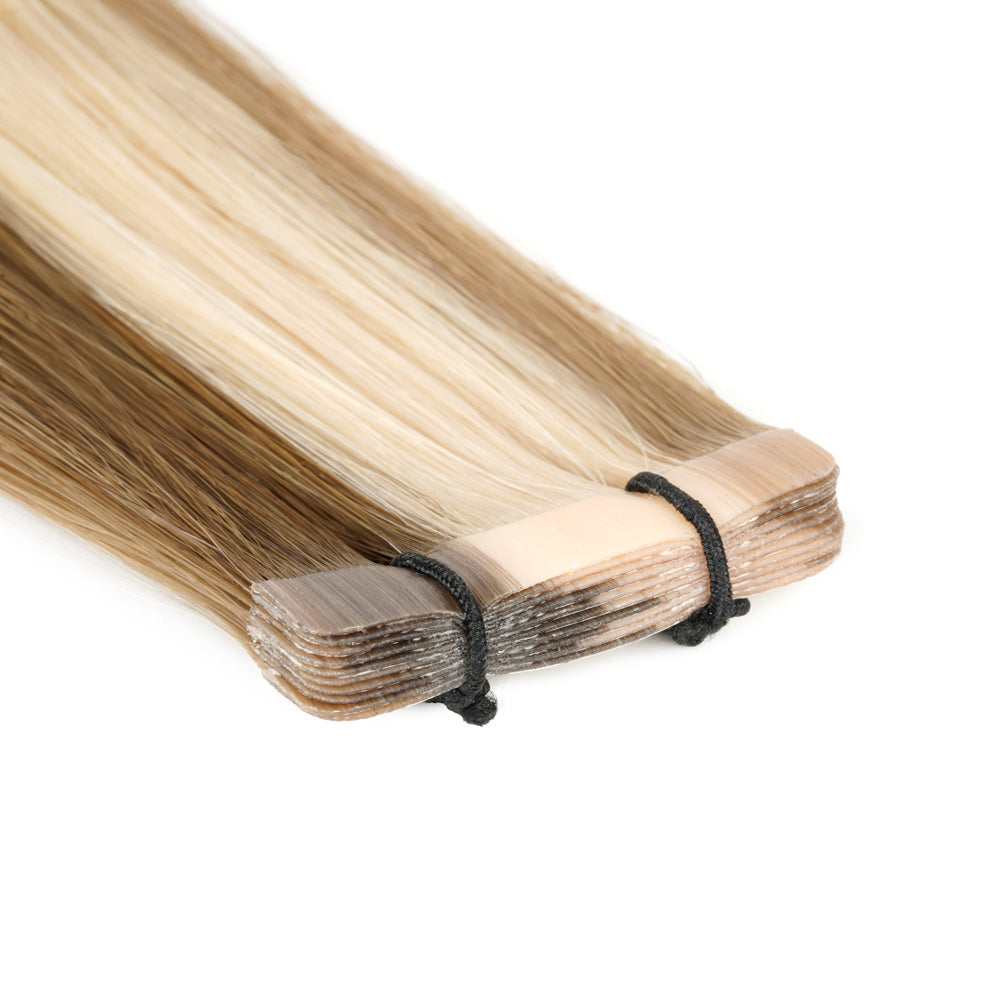 Kioma. Tape-Ins are professional-grade, reusable extensions designed for seamless blending and efficient installation. With salon-grade adhesive and a refined construction, they deliver volume, length, and dimension without compromising the integrity of the client’s natural hair.