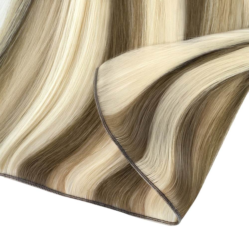 The Genius Weft is our most discreet, flexible, and seamless extension weft yet. It combines the density of a volume weft with the flexibility and comfort of a hand-tied without the return hair (aka "mustache"). It’s designed for maximum blendability and minimum bulk.
